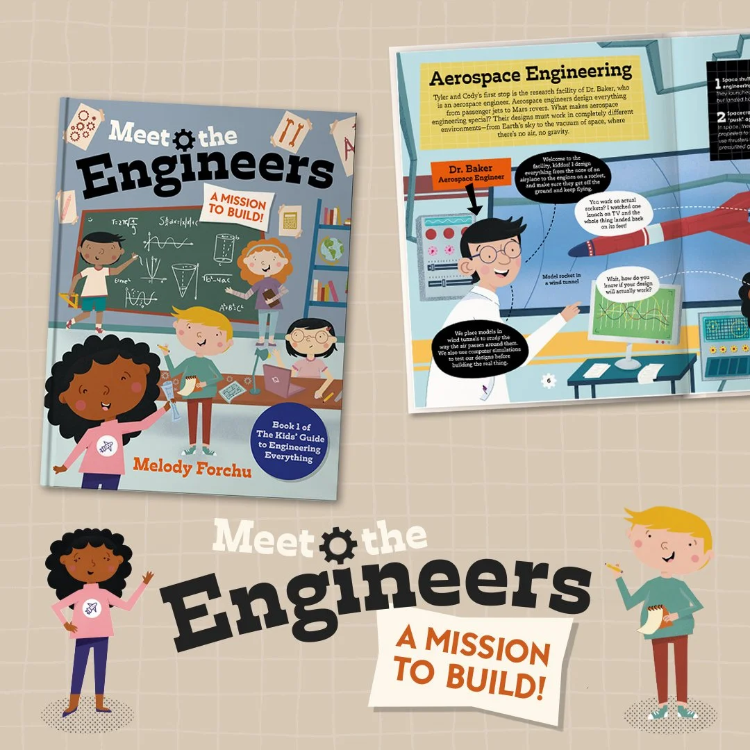 Meet the Engineers: A Mission to Build! takes kids on an adventure through 10 engineering fields, weaving in historic facts and real-world connections along the way. Tyler and Cody meet a new engineer at every stop, sparking curiosity, creativity, and critical thinking. This book encourages children to ask questions, think deeper, and see the world through an engineer's eyes — while building skills in teamwork, collaboration, and troubleshooting.